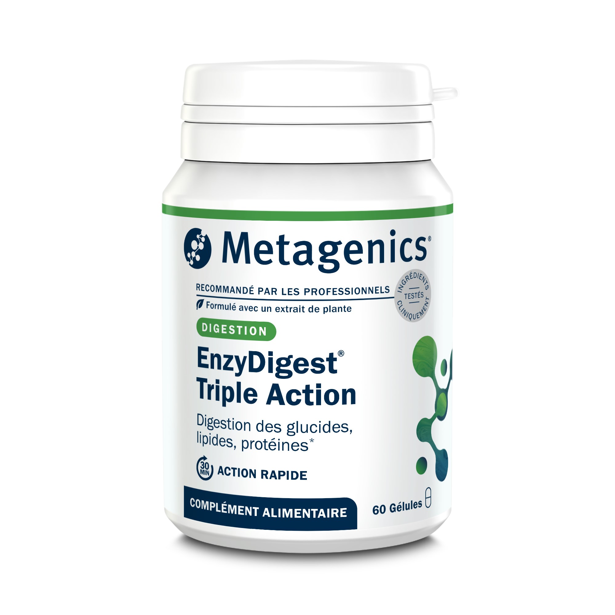 *EnzyDigest® Triple Action contains ginger rhizome extract, which supports digestion naturally. EnzyDigest® Triple Action also contains a complex of digestive enzymes and soy lecithin. EnzyDigest® Triple Action promotes better digestion, especially of carbohydrates, lipids, and proteins, thus reducing feelings of heaviness after a meal.