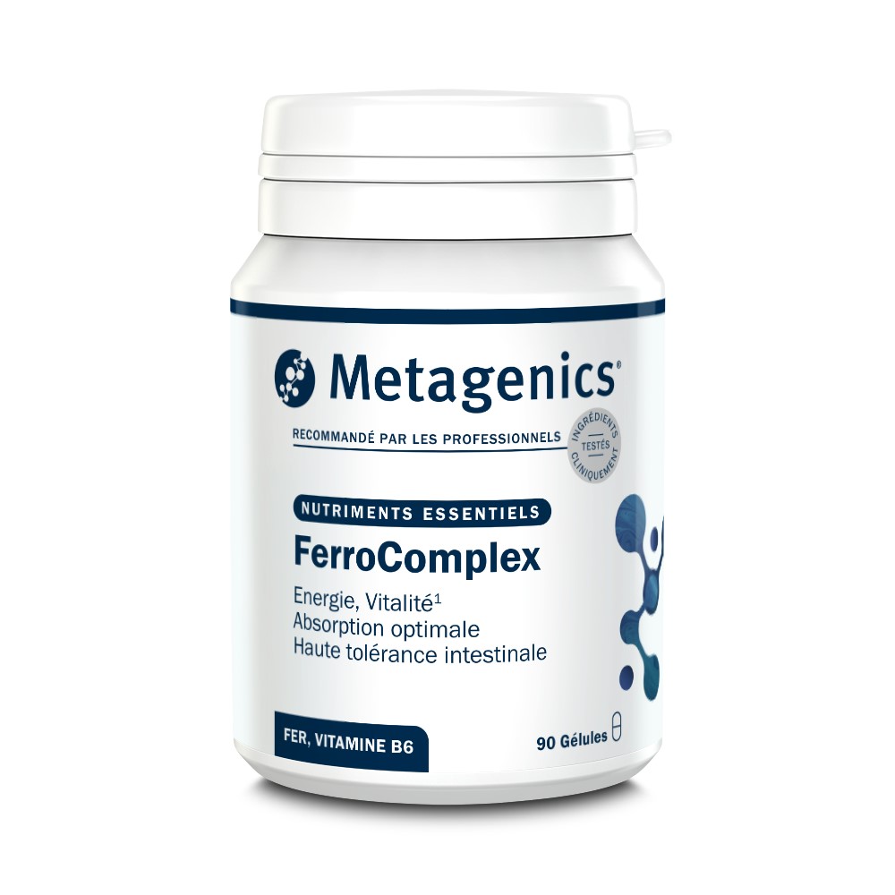 1FerroComplex contains iron and vitamin B6, which support energy production and help with fatigue. Additionally, iron supports the formation of red blood cells.